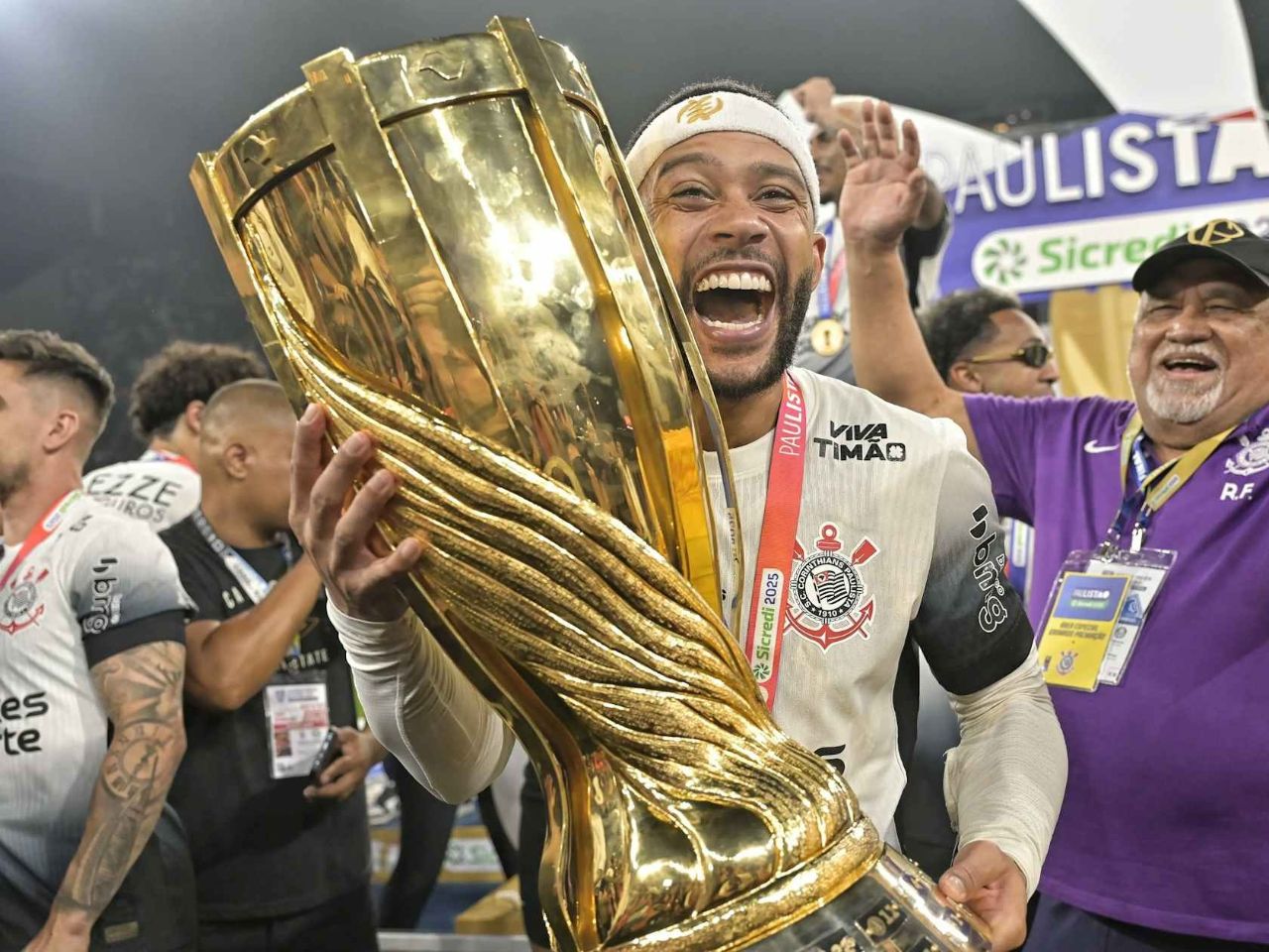 O atacante Memphis Depay festejou, e muito, o primeiro título com a camisa do Corinthians. Protagonista na conquista do Campeonato Paulista, garantido após o empate sem gols com o Palmeiras nesta quinta-feira, na Neo Química Arena, o holandês se disse orgulhoso pelo feito e dedicou o troféu à torcida.