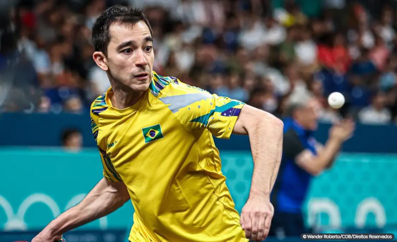 O mesa-tenista brasileiro Hugo Calderano está nas oitavas de final dos Jogos Olímpicos de Paris. Na segunda rodada do torneio de tênis de mesa, o atleta carioca teve um jogo difícil contra o espanhol Alvaro Robles. O adversário começou melhor, levando a primeira parcial pro 11/7. Hugo deu o troco levando as parciais seguintes por 13/11 e 11/9. Robles voltou a endurecer o confronto, e venceu o quarto set por 11/8, deixando tudo empatado em 2 a 2. Aí Calderano voltou a tomar o controle da partida. Venceu a quinta parcial por 11/3 e encerrou o sexto e último set em 11/5, fechando o jogo de virada por 4 a 2, em 53 minutos de duelo.